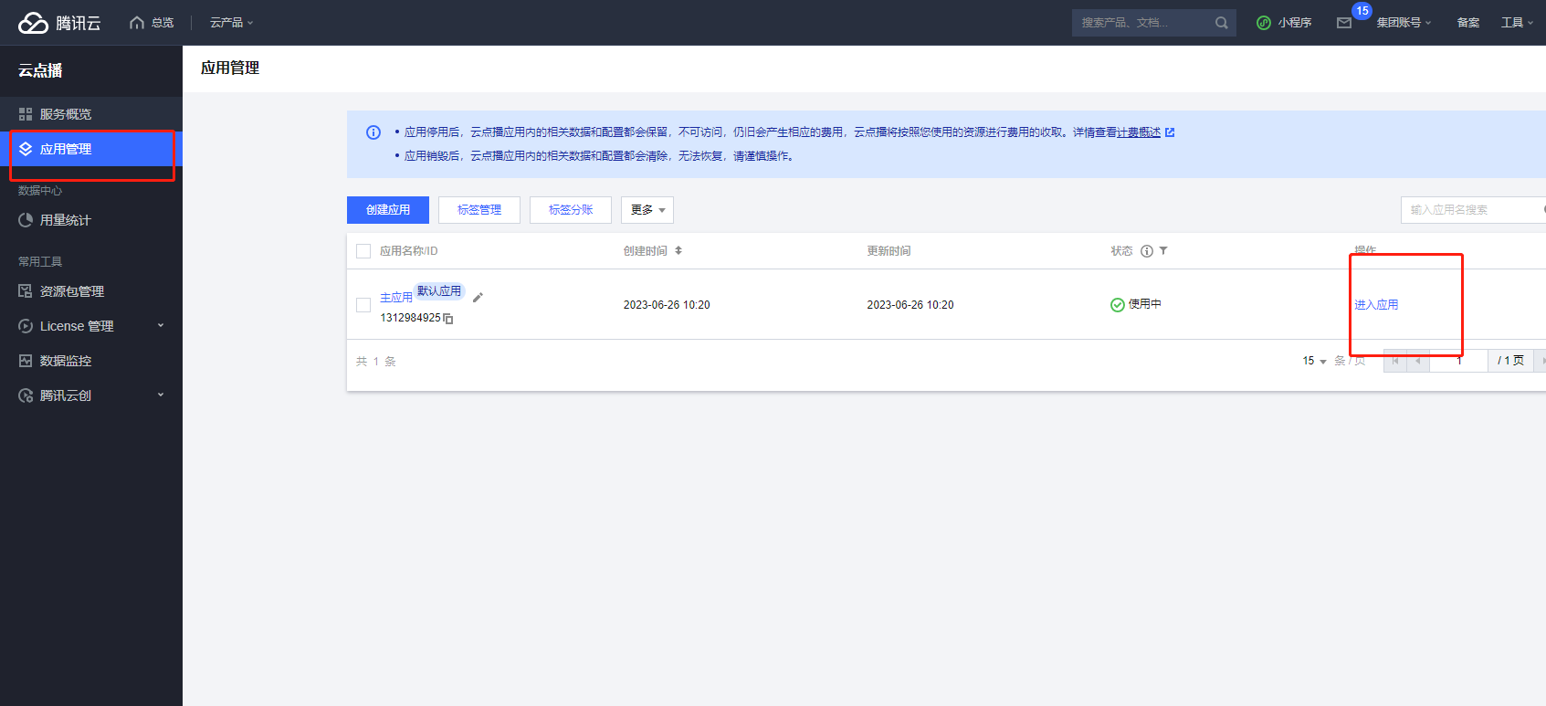 3.1.1点击左侧的“应用管理”找到主应用-进入应用