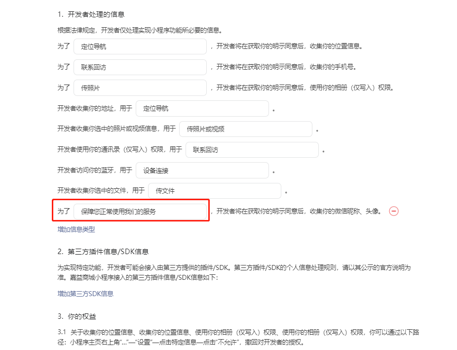 目录 搜索 展开 模王系统准备资料模王系统对接上线操作指南1、服务号的申请流程及认证2、申请小程序流程3、申请开放平台绑定小程序和公众号4、公众号对接后台流程5、小程序对接后台流程6、申请注册微信支付商户号7、支付对接操作指引8、小程序链接库9、腾讯位置服务注册10、申请移动应用11、小程序发布流程12、小程序备案13、小程序变更主体14、更新隐私协议15、关于小程序订单中心页设置的公告16、小程序接入发货管理系统17、小程序年审18.小程序对接企业微信客服19.微信提现(新接口:商家转账)20.短信资质需要准备的资料商城基础功能(系统框架)商城管理-概况商城管理-商品1,发布商品2,商品列表3,商品表单4,商品分类5,品牌管理6,配送模板7,评论管理8,优惠券管理9,商品标签10,退货地址设置11,满额优惠12、批量操作13、配送方式14、基础设置15、商品隐藏商城管理-会员1、全部会员2、会员等级3、会员分组4、资格申请5、会员设置6、推广中心设置7、会员邀请码使用记录8、关系链修改记录9、会员合并记录10、账号注销管理11、会员设置中心商城管理-订单1、订单管理列表2、订单处理流程3、订单状态4、订单修改价格5、订单退款退货(文档说明)6、多包裹发货7、批量发货订单操作步骤8、催发货订单商城管理-财务1、余额设置2、会员余额3、充值记录4、转让记录5、余额明细6、收入明细7、提现设置8、提现统计9、提现记录10、积分管理11、转账审核12、收益广告13、批量充值14、指定支付(余额充值)商城管理-系统1、商城入口2、商城设置①、商城设置②、订单设置③、物流查询④、短信阿里云短信配置腾讯云短信设置⑤、联系方式⑥、分类⑦、优惠券⑧、分享⑨、幻灯片⑩、广告位⑪、资产密码⑫、地图设置⑬、API应用⑭、邮箱配置3、交易设置4、支付方式①:微信支付②、其他支付(余额/他人代付/银行转账/货到付款)5、微信模板消息类目模板库-自定义消息通知 自定义消息模板小程序消息公众号模板消息变更公告6、语言设置7、权限管理8、多媒体管理商城管理-消息商城管理-应用商城管理-统计商城管理-装修DIY1、模板管理2、店铺页面2.1、装修增加跳转视频号2.2、增加抖音装修类型3、顶部导航4、底部导航5、DIY模板市场6、首屏广告7、图片智能设计8、基础设置应用-入口类【小程序】1、小程序基础设置运营规范2、小程序首次授权自动绑定手机号【公众号】1、自定义菜单-公众号底部导航2、自动回复3、素材管理4、粉丝管理【PC前端模板】1、基础设置2、广告管理-PC端模板1设置3、首页商品设置4、前端页面5、登录方式6、PC端模板2【子平台】【更换域名后公众号、小程序、商城等需要调整的内容】【一种万能的获取商城小程序路径的方法】【小程序客服】应用-行业类AI看舌付费内容付费文档【酒店】1、酒店基础设置2、酒店幻灯片3、酒店分类4、酒店入驻和管理5、酒店独立后台和商品6、酒店前端【门店-收银台】1、门店申请和使用步骤1.1 门店申请资料同步汇付进件2、门店管理①、门店-收银台 营销设置②、门店-收银台 分润设置3、门店分类4、门店申请5、门店审核6、门店商品7、门店商品订单8、收银台订单9、提成明细10、数据统计11、核销员12、基础设置收银台买单增加语音播报功能(会员推送)13、默认设置14、连锁店老板15、门店独立后台操作16、地图设置17、门店广告18、门店增加门店自提点功能19、门店、收银台分销 区域分红 招商分红计算示例20、门店股东21、门店余额1、门店余额插件2、门店-收银台插件-门店余额设置3、门店独立后台4、前端展示22、门店配送规则23、会员爱心值给到店主24.常见问题处理【供应商】1、供应商申请2、后台供应商插件3、供应商基础设置4、供应商前端页面显示5、供应商保单功能-可供保险行业提交保单信息使用6、供应商关联自提点【自提点】1、自提点操作说明2、自提点社区团购管理2.1 装修DIY插件增加社区团购组件3、自提点海报、自提点锁定期4、自提点消息通知5、自提点提成明细【商城自提】【上门安装】【视频点播】腾讯云上传视频流程1、【视频点播】基础设置2、幻灯片/导航管理3、添加讲师/在商品添加课程视频4、课程聚合页5、会员如何购买课件、打赏讲师6、会员如何升级等级免费观看课件7、讲师提现设置8、看课记录9、订单管理【安装服务】【活动报名】1.功能简介说明2.活动分类3.报名活动4.付费订单5.幻灯片6.基础设置7.前端活动报名操作流程【租赁】【同城配送】【店铺助手】【微社区】1、微社区基础设置2、微社区帖子分类管理3、微社区会员如何发帖4、微社区帖子管理5、微社区帖子打赏记录6、微社区帖子敏感词管理7、微社区增加心愿功能【代客下单】【支付宝配置】【分时预约】【拍卖商品】1、基础设置2、轮播图3、拍卖官列表4、拍品列表4、订单管理5、保证金记录6、拍卖记录7、拍卖官收入8、出价奖励记录9、代言费10、保证金黑名单11、禁拍名单12、拍卖前端【圈子社区】【AI智能测肤】【随叫随到服务】扫码买单【虚拟卡密】【厂家管理】【会务活动】1.会务活动管理2会务活动基础设置3.前端会务活动如何进行报名顾客档案应用-供应链类【聚合供应链】1、聚合供应链入驻流程2、聚合供应链常见问题3、聚合供应链售后解答4、