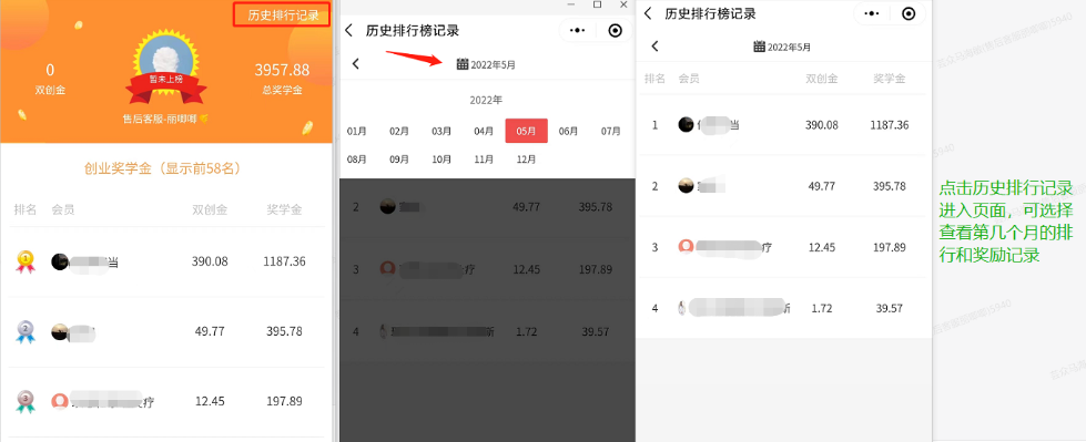根据分销商所获佣金做排行,后台可以设置哪个分销等级参与排行,显示多少名排行,排行榜按月更新。可以给上榜会员做排行榜分红。分销佣金计算方式:按照订单支付的日期,进行二级分销佣金的累计,按月进行排行,订单支付进行累计佣金增加,订单退单进行累计佣金减少。