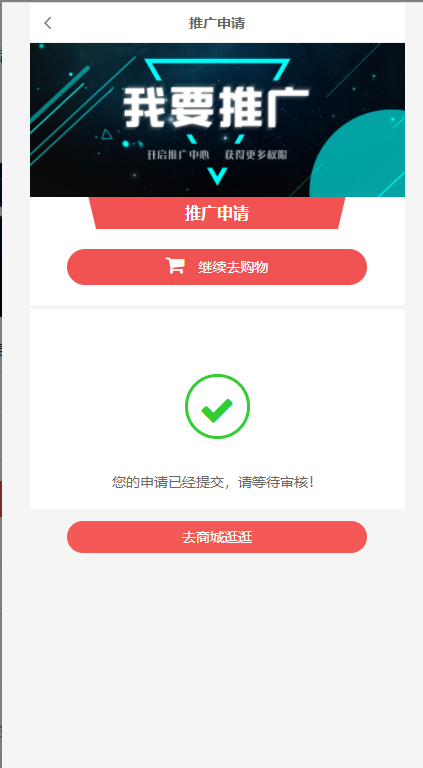 填写个人信息提交审核,等待审核结果。审核管理需由商家在“后台--会员管理--会员关系--资格申请”处进行是否审核通过。