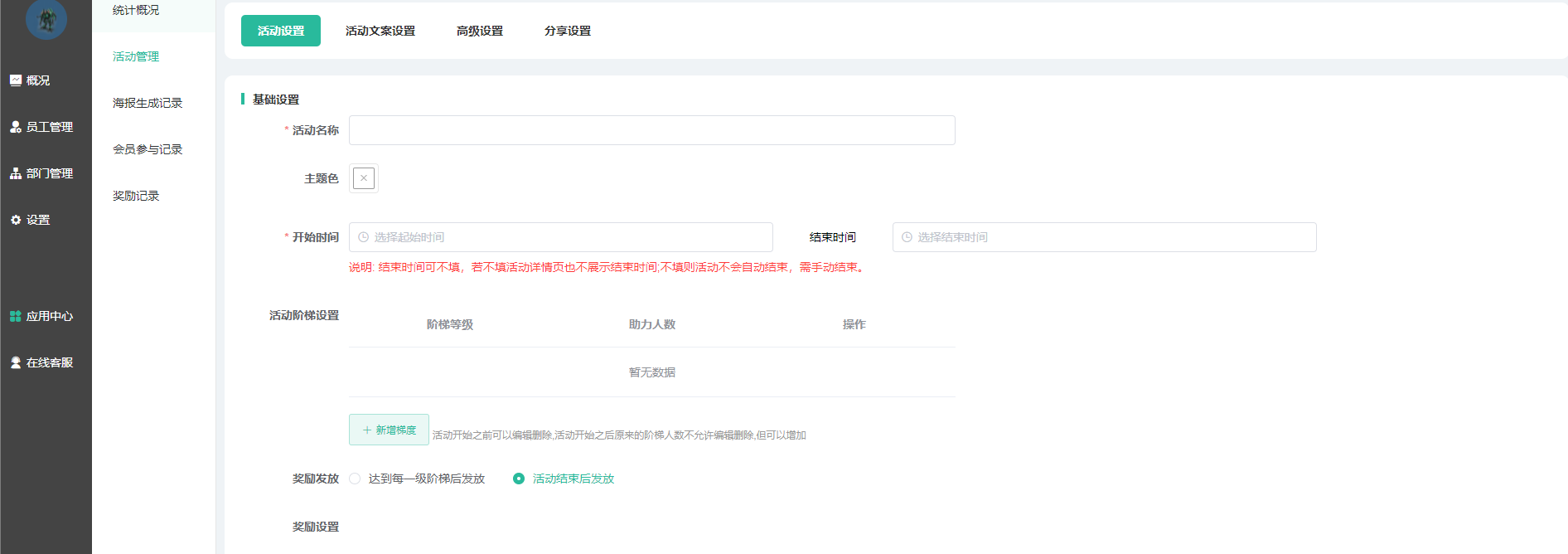 - 活动阶梯设置:支持设计多个奖励阶梯、不同的阶梯达标后给予不同的奖励;