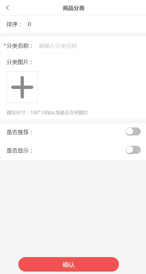(1-1)创建分类:排序、分类名称、分类图片、是否推荐、是否显示