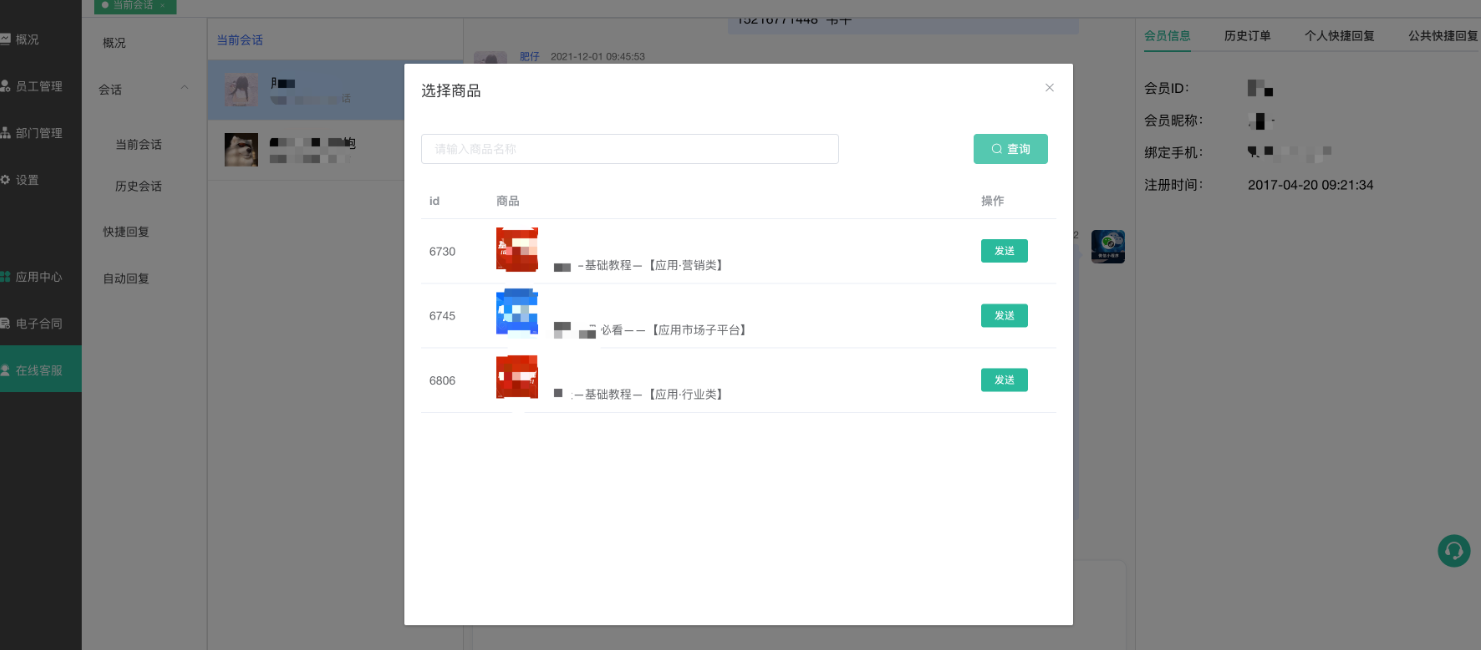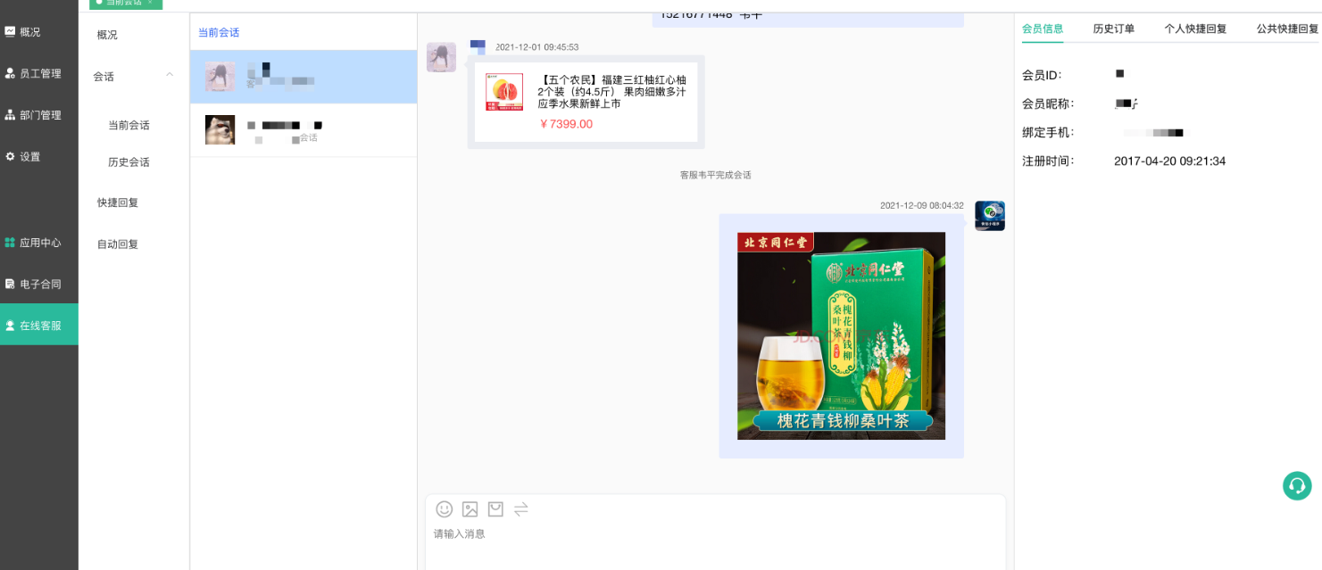 客服人员在手机端-会员中心-客服入口,可以查看会话列表,清楚进行回复。